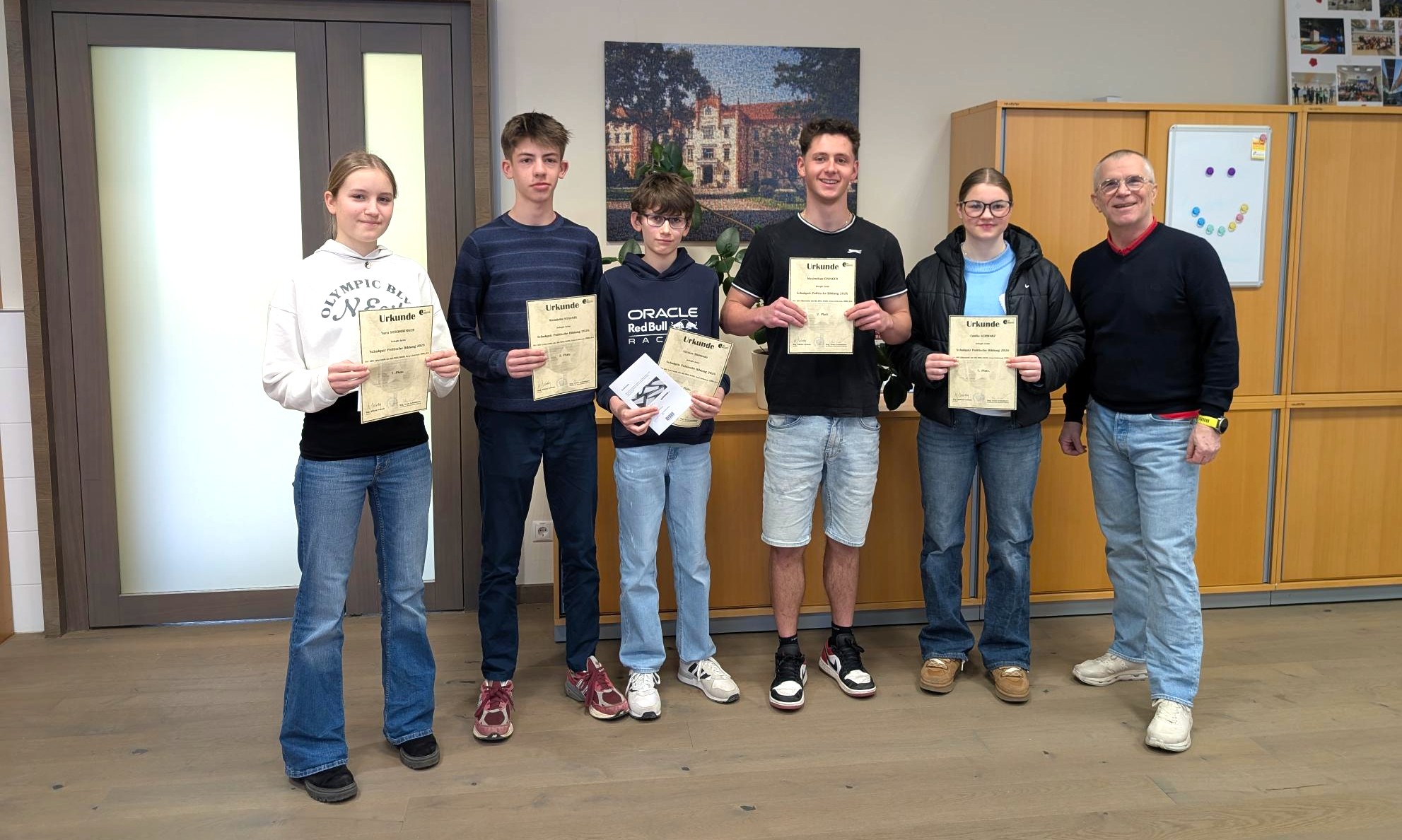 Den Schulsieg in der Oberstufe konnte sich heuer Emilia sichern, jenen in der Unterstufe Yara. Auf den Plätzen zwei und drei folgten Max und Julian in der Oberstufe bzw. Wendelin und Nicolas in der Unterstufe. Belohnt wurde dieser erste Etappensieg mit Büchergutscheinen und Urkunden in der Direktion. Ende März geht es für die ersten zwei dann weiter beim Landesquiz im Grazer Landhaus. Gratulation zu den bisherigen Leistungen und viel Erfolg für das große Finale in den zentralen Hallen der steirischen Landespolitik!